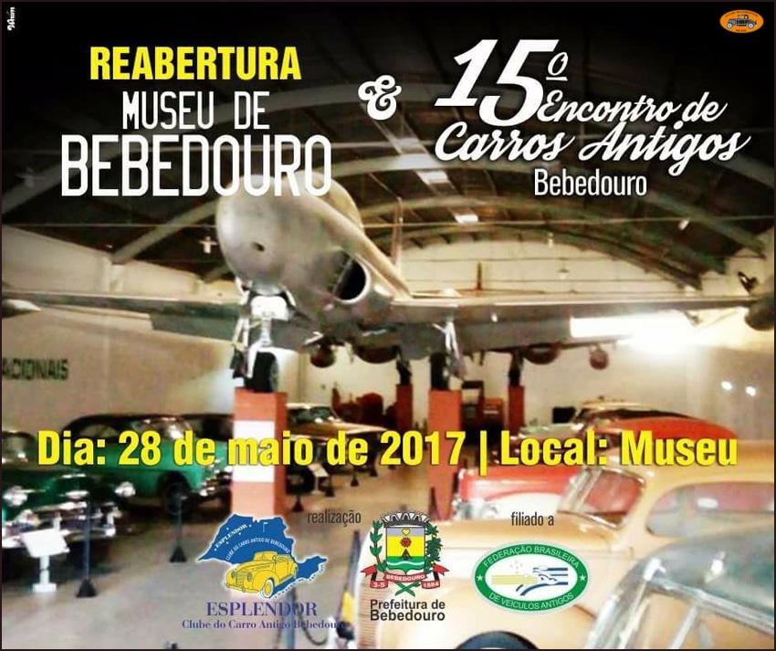 O Museu de Armas, Veiculos e Aeronaves Classicas Eduardo André Matarazzo, será reaberto, no evento ocorrerá também 15º Encontro de Carros Antigos de Bebedouro.