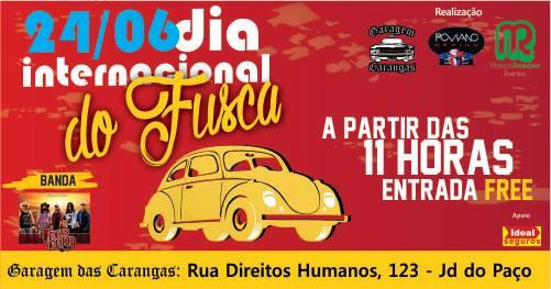 Um encontro em comemoração ao veiculos mais apaixonante de todos os tempos FUSCA. Quem nunca andou em um fusca, esse carro alem de apaixonante ele é um ícone na história automobilística. Então se você também curti o 'fusqueta' venha para a Garagem das Carangas que com certeza você ira encontra exemplares de todos os modelos. O local totalmente coberto com exposição de motos e carros antigos, além de shows e stands de roupas, peças, Acessórios, produtos de Embelezamento Automotivo, barbearia, miniaturas e praça de alimentação